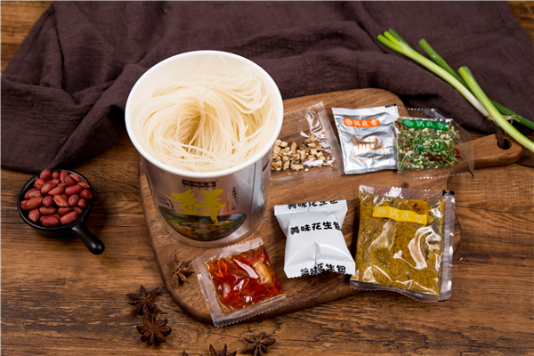 鍋底香過橋米線鮮濕粉的鮮粉是手工制作,不添加任何防腐劑。其中大米含量達70%以上,口感筋道,附水性強,只需開水沖泡五分鐘,米線口感Q彈美味。米線中含有人體所需的6大營養要素——碳水化合物、蛋白質、脂肪、礦物質、維生素和水,有一定的營養價值。真可謂是小小的身體,大大的能量。
